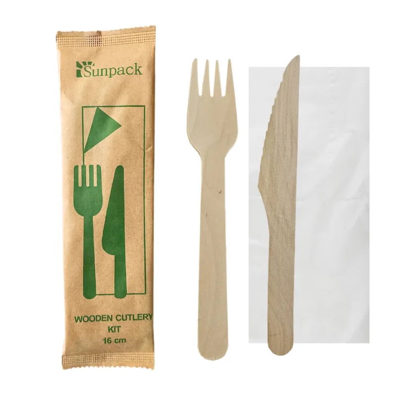 Эко-набор столовых приборов: вилка + нож + салфетка
