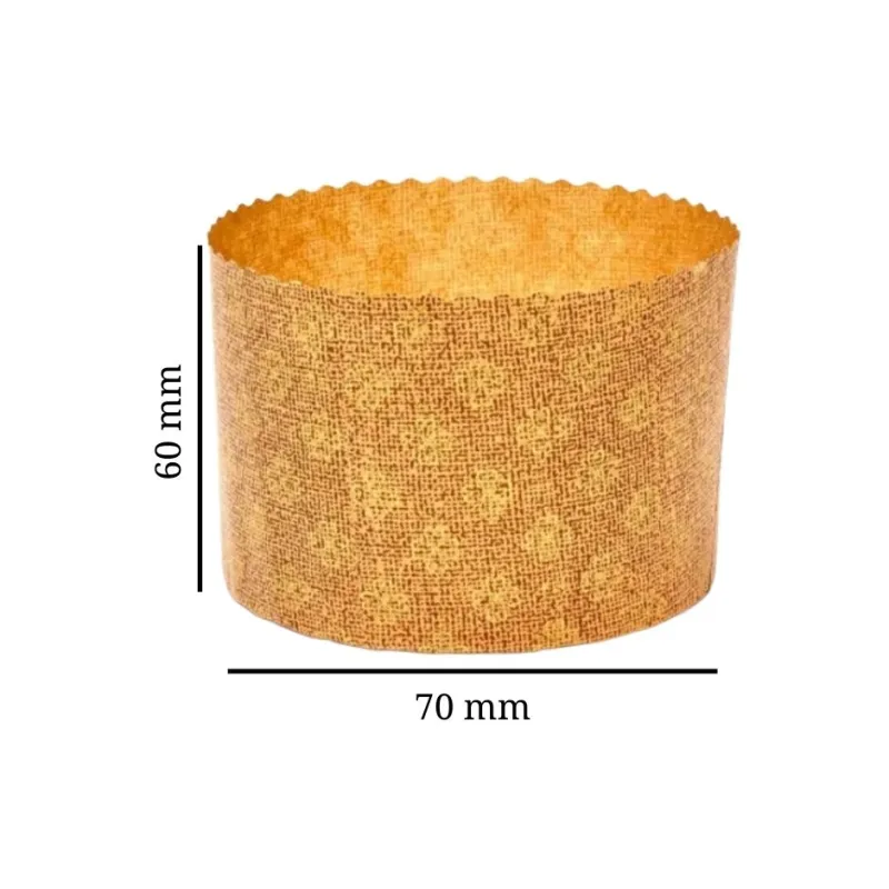 Классические бумажные формы для выпечки панеттоне и куличей. Размер 70x60H мм с ориентировочной вместимостью 100 г идеален для мини-панеттоне или индивидуальных порций. Высокая форма отлично подходит для теста, которое поднимается при выпечке.