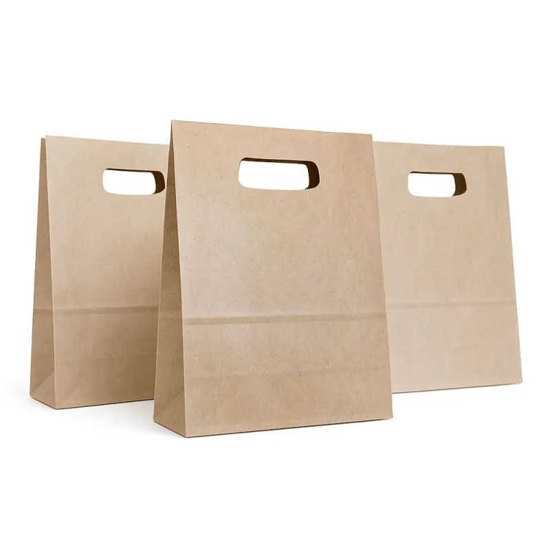Бумажный пакет с вырезной ручкой, 18x9x25 см, коричневый