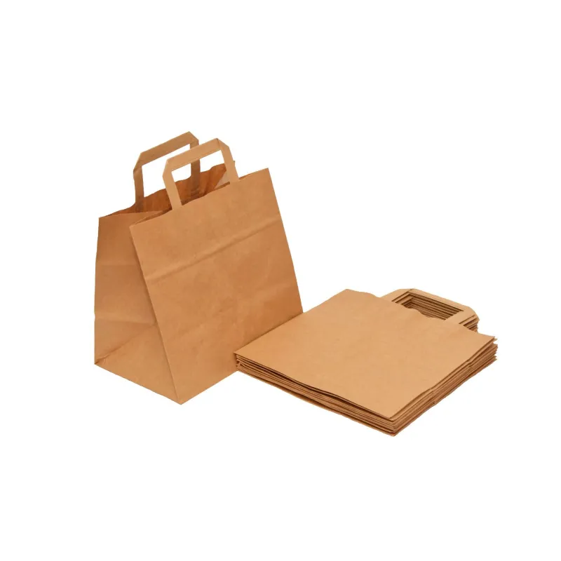 Бумажный крафт-пакет с плоскими ручками 26x17x25 см, коричневый