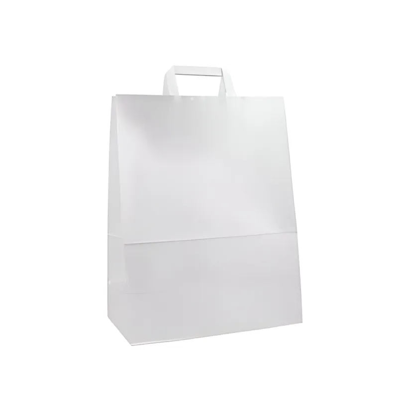 Бумажный крафт-пакет с плоскими ручками 26x17x30 см, белый