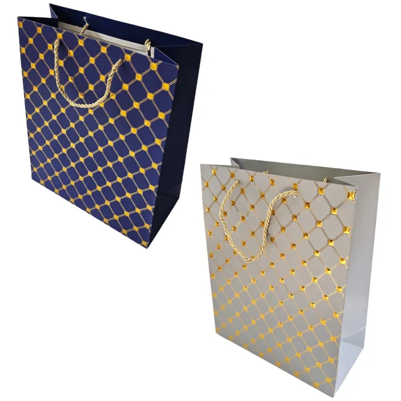 Бумажный подарочный пакет 26x12x32 см, с золотым узором, в ассортименте